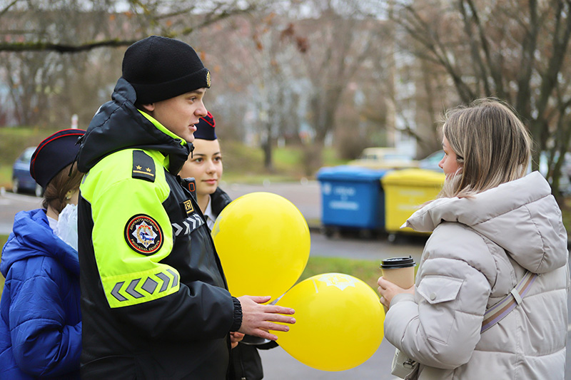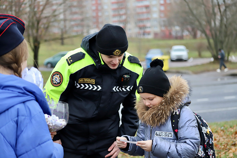 «Сейчас световой день становится все короче. Идем на работу – еще темно, возвращаемся – уже темнеет», – напоминают пешеходам инспекторы ГАИ, вручая заготовленный светоотражающий элемент.