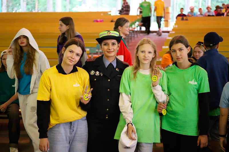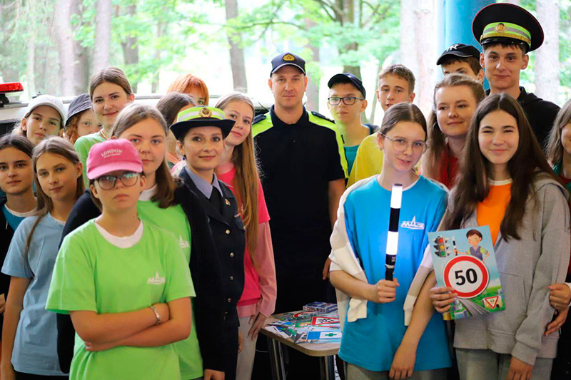 Сотрудники ГАИ, ИДН и ППСМ Заводского РУВД столицы, а также бойцы ОМОН провели квест для ребят, отдыхающих в ДОЛ «Зубренок» и рассказали юным пешеходам о соблюдении ПДД, напомнили о правилах безопасного поведения в быту и общественных местах.