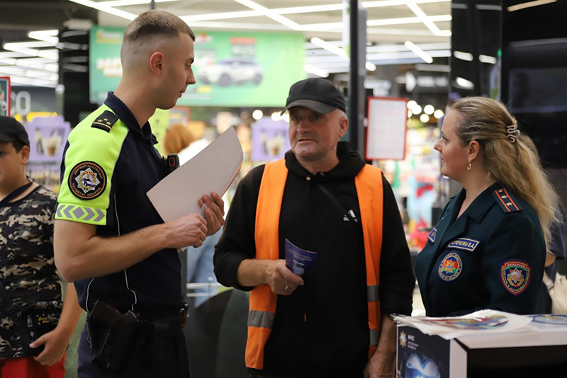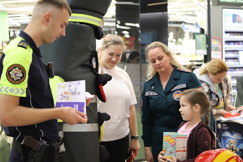 В рамках республиканской информационно-пропагандистской акции «Безопасные каникулы!» работники Заводского районного отдела по чрезвычайным ситуациям совместно с представителями Белорусского добровольного пожарного общества и сотрудниками государственной автомобильной инспекцией организовали мероприятие на территории торгового центра «Грин».