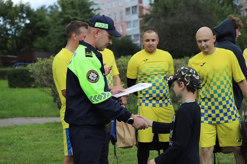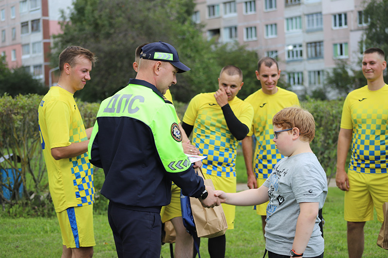 В рамках СКМ «Внимание-дети!» сотрудники отдела Госавтоинспекции Заводского РУВД столицы организовали товарищеский матч по мини-футболу с участием воспитанников ГУО «Социально-педагогический центр с приютом Заводского района г. Минска».