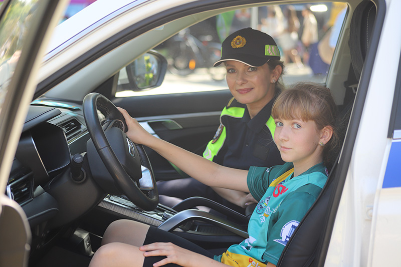 Каждый юный пешеход был премирован фликером, памятными сувенирами, сладкими сюрпризами, а победители заезда смогли прокатиться вместе с инспектором на служебном автомобиле.