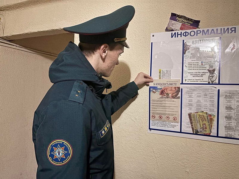 В ходе профилактических рейдов не только вручаются рекомендации с алгоритмами предотвращения пожаров, но и размещаются наглядные информационные материалы в подъездах многоквартирных домов и на общественных стендах в местах массового скопления людей.
