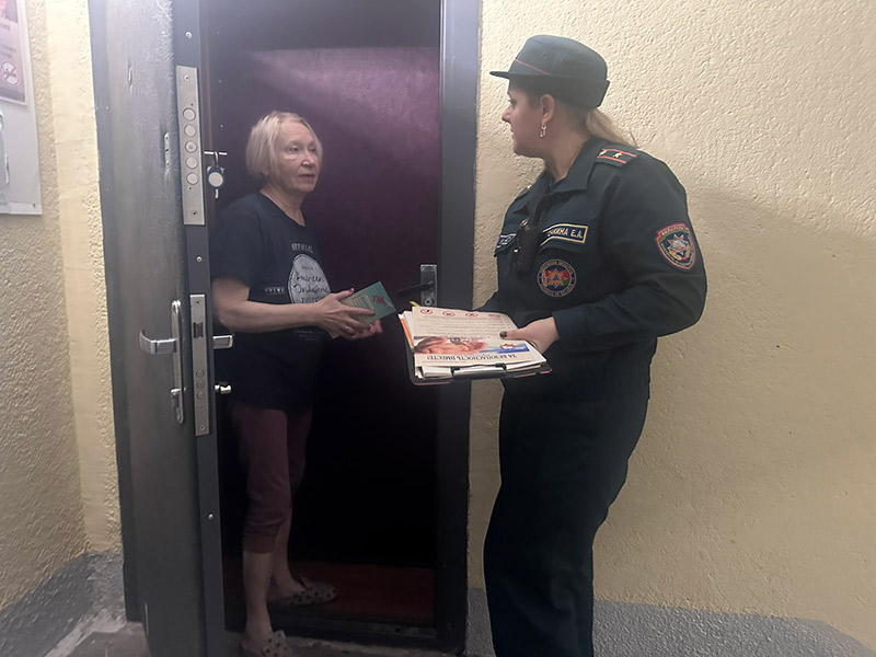 Помимо беседы и напоминаний о соблюдении правил пожарной безопасности, спасатели вручали каждому домовладельцу наглядно-изобразительную продукцию с полезной информацией и разместили противопожарные листовки на информационных стендах в жилых домах.
