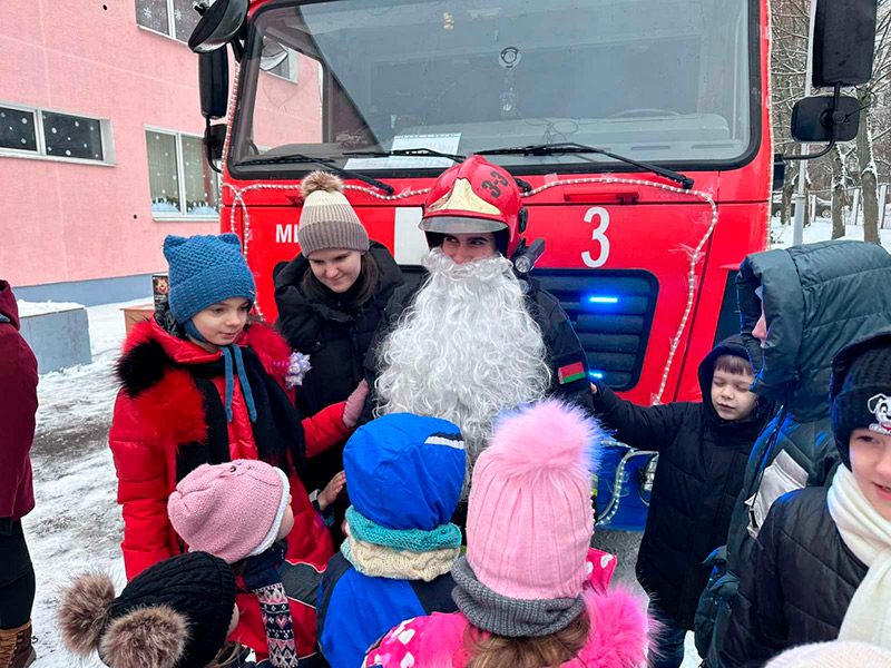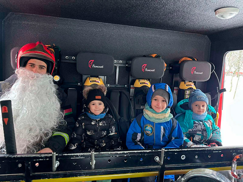 Настоящим сюрпризом стал пожарный Дед Мороз, который прибыл не на сказочных санях, а на настоящей пожарной машине. Дети были в восторге, им разрешили посидеть в кабине спецтехники и почувствовать себя настоящими спасателями.
