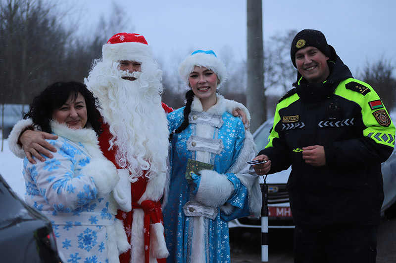 В последний день уходящего года на улицах Заводского района столицы можно было встретить необычный экипаж. К служебному автомобилю ГАИ присоединилась... настоящая Снегурочка! Так прошла совместная праздничная акция отдела ГАИ Заводского РУВД г. Минска и районной организации МООП «БРСМ».