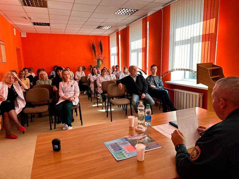 Заместитель начальника Заводского районного отдела по чрезвычайным ситуациям Юрий Рыбак провел профилактическую беседу с трудовым коллективом 23-й детской поликлиники.