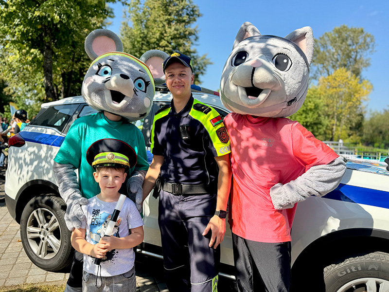 Вблизи торгового центра «Prizma» инспекторы ГАИ Заводского района столицы приняли участие в проведении семейного праздника «Школьный старт» и организовали тематическую площадку.
