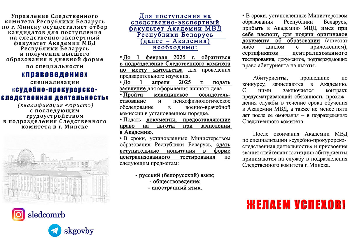С дополнительной информацией можно ознакомиться на сайтах Академии МВД – academy.mia.by и Следственного комитета Республики Беларусь – www.sk.gov.by.
