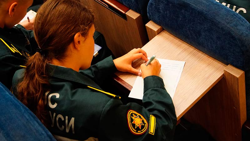 В университете МЧС для участников организовали просмотр прямой трансляции из Национальной библиотеки Беларуси, где проходила основная часть диктанта. Онлайн-формат позволил обучающимся следить за диктовкой текста в режиме реального времени, а сам процесс максимально приближен к аудиторному занятию.