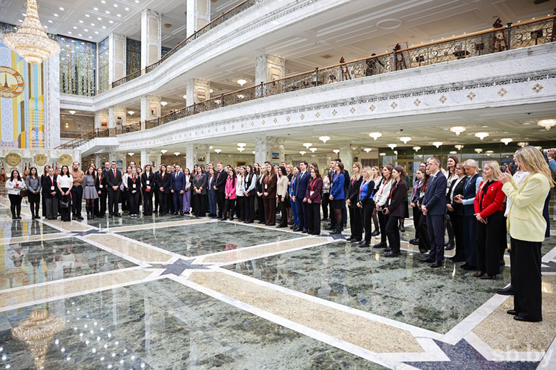 В Минске в эти дни проходит III Минский форум молодых государственных служащих с участием сотрудников организаций государственного управления и самоуправления в возрасте до 31 года. В текущем году форум объединил 120 госслужащих и работников Мингорисполкома, администраций районов, республиканских органов госуправления и самоуправления, а также 19 работников органов государственного управления и самоуправления иностранных государств: это Российская Федерация, Республика Узбекистан, Кыргызская Республика. Участникам форума сегодня, 9 декабря, посчастливилось побывать на экскурсии в главном символе белорусской государственности — во Дворце Независимости.