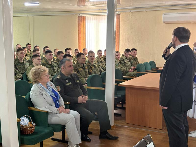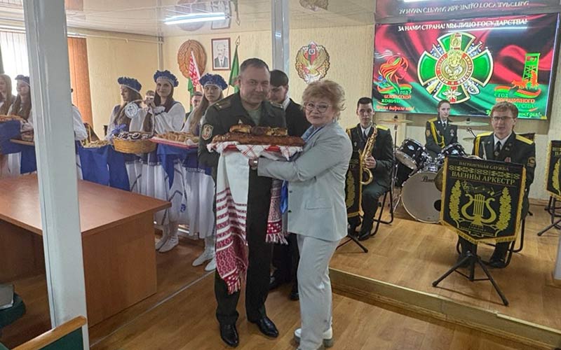 «Мы знаем, как вы скучаете по родным, – обратилась к военнослужащим Жанна Севостьяновна Лазарчик, директор ГУО «Средняя школа № 144 г.Минска». – Этот пирог испечён с той самой любовью, с какой ваши мамы встречают вас в увольнении. Пусть он напомнит вам о самом главном – о семье и Родине».