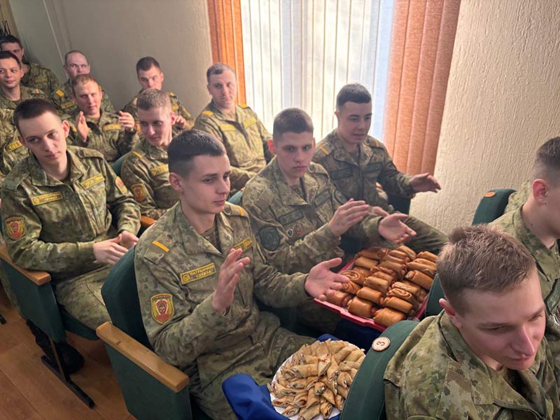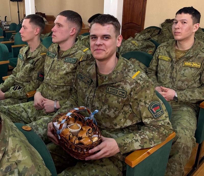 В гости к защитникам приехали те, кто лучше всех знает, что такое тепло и забота – представительницы Белорусского союза женщин Заводского района г.Минска. Под музыку в зал вышли девушки с корзинами румяных пирогов. Этот дар стал настоящим символом дома.