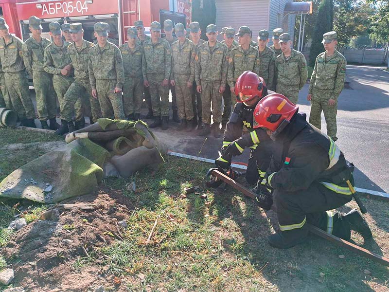 Во время встречи военнослужащим продемонстрировали автомобиль быстрого реагирования, рассказали его основные характеристики и ознакомили с аварийно-спасательным инструментом, находящимся в использовании у спасателей. Самые активные участники встречи смогли примерить экипировку спасателей и поучаствовать в тушении воображаемого возгорания.