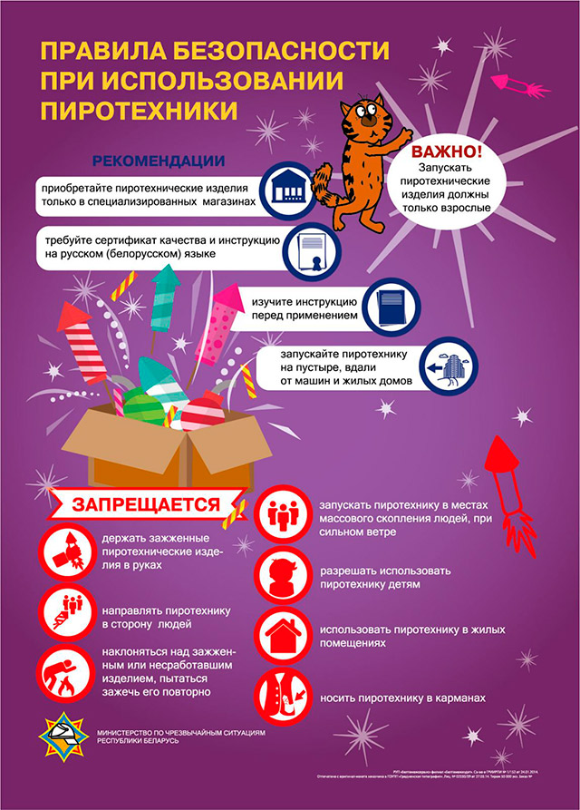 - приобретая пиротехнику, проверяйте наличие сертификата качества и инструкции по её применению на русском и белорусском языке;