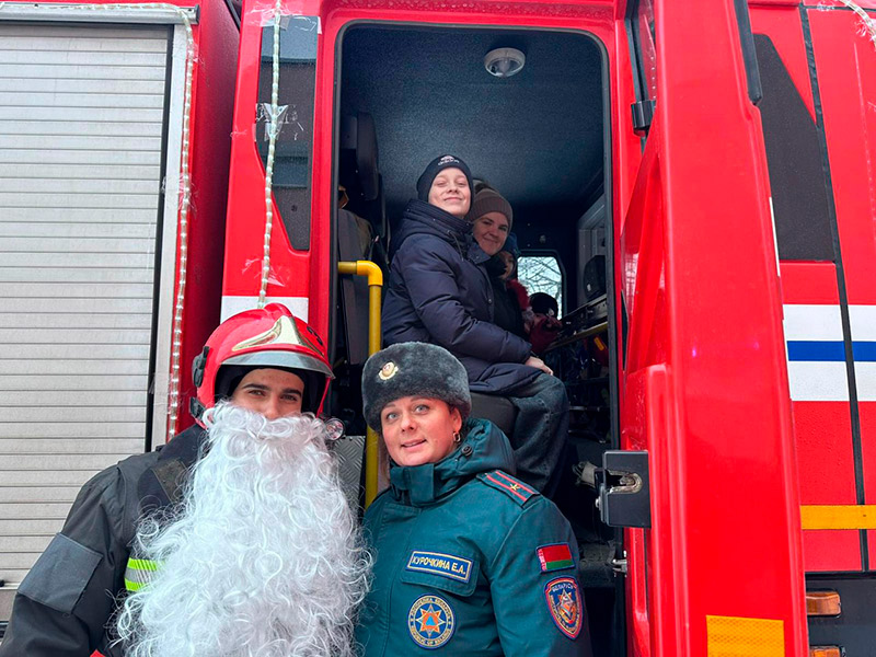 Настоящим сюрпризом стал пожарный Дед Мороз, который прибыл не на сказочных санях, а на настоящей пожарной машине. Дети были в восторге, им разрешили посидеть в кабине спецтехники и почувствовать себя настоящими спасателями.