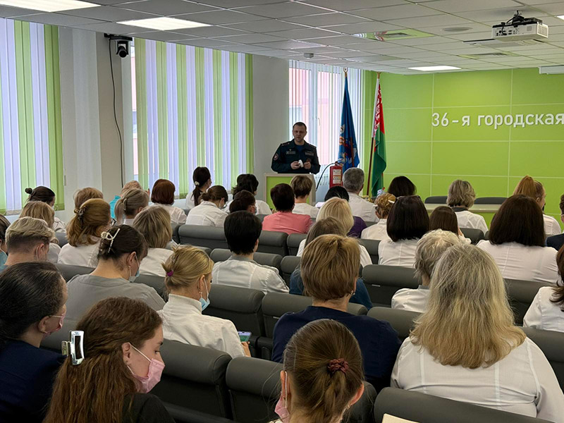 В рамках республиканской акции «За безопасность вместе!» заместитель начальника Заводского районного отдела по чрезвычайным ситуациям провел обучающее занятие с трудовым коллективом поликлиники.