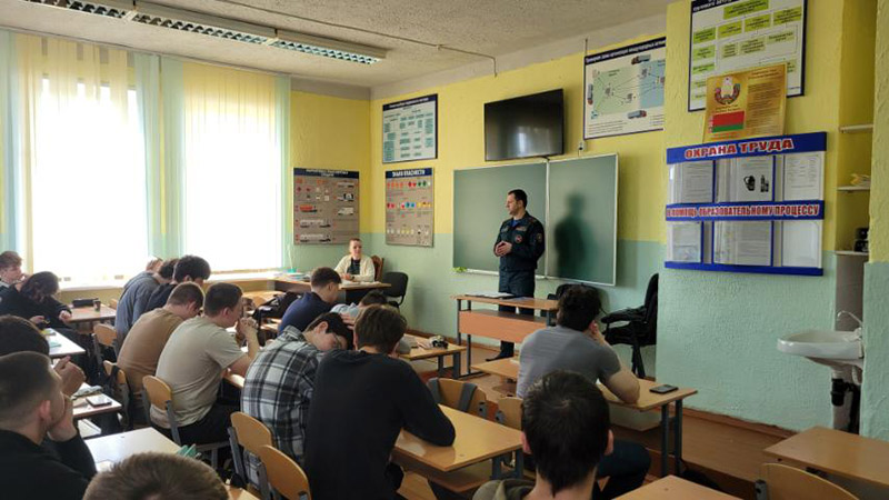 Заместитель начальника Заводского районного отдела по чрезвычайным ситуациям Виталий Романишко провел профориентационную встречу со студентами Минского государственного автомеханического колледжа имени М.С. Высоцкого.