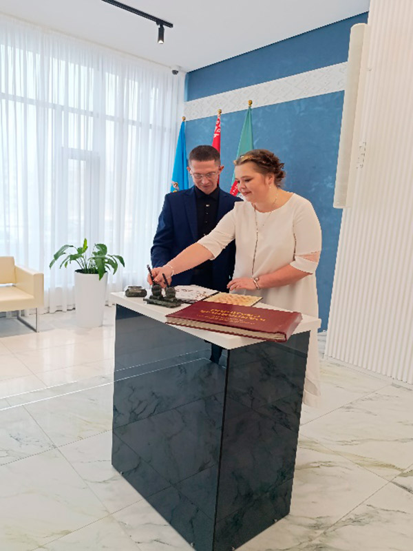 В преддверии Дня города, 10.09.2025 в отделе ЗАГС администрации Заводского района г.Минска с «фарфоровой свадьбой» – 20 лет семейной жизни, поздравили супругов Жигарь, Сергея Александровича и Наталью Фёдоровну! Ровно 20 лет назад, 10.09.2005, молодые люди под звуки свадебного марша вошли в ЗАГС Заводского района с надеждой обрести счастье, которое видели и представляли себе возможным только соединив свои сердца и судьбы в одно целое, в семью! В день бракосочетания, в знак искренней любви, молодожены посадили деревце на аллее молодоженов администрации Заводского района г.Минска.