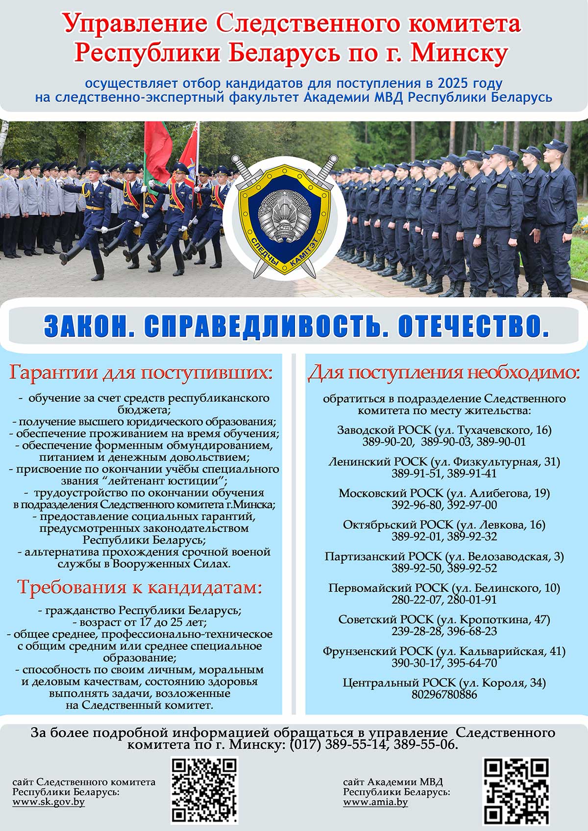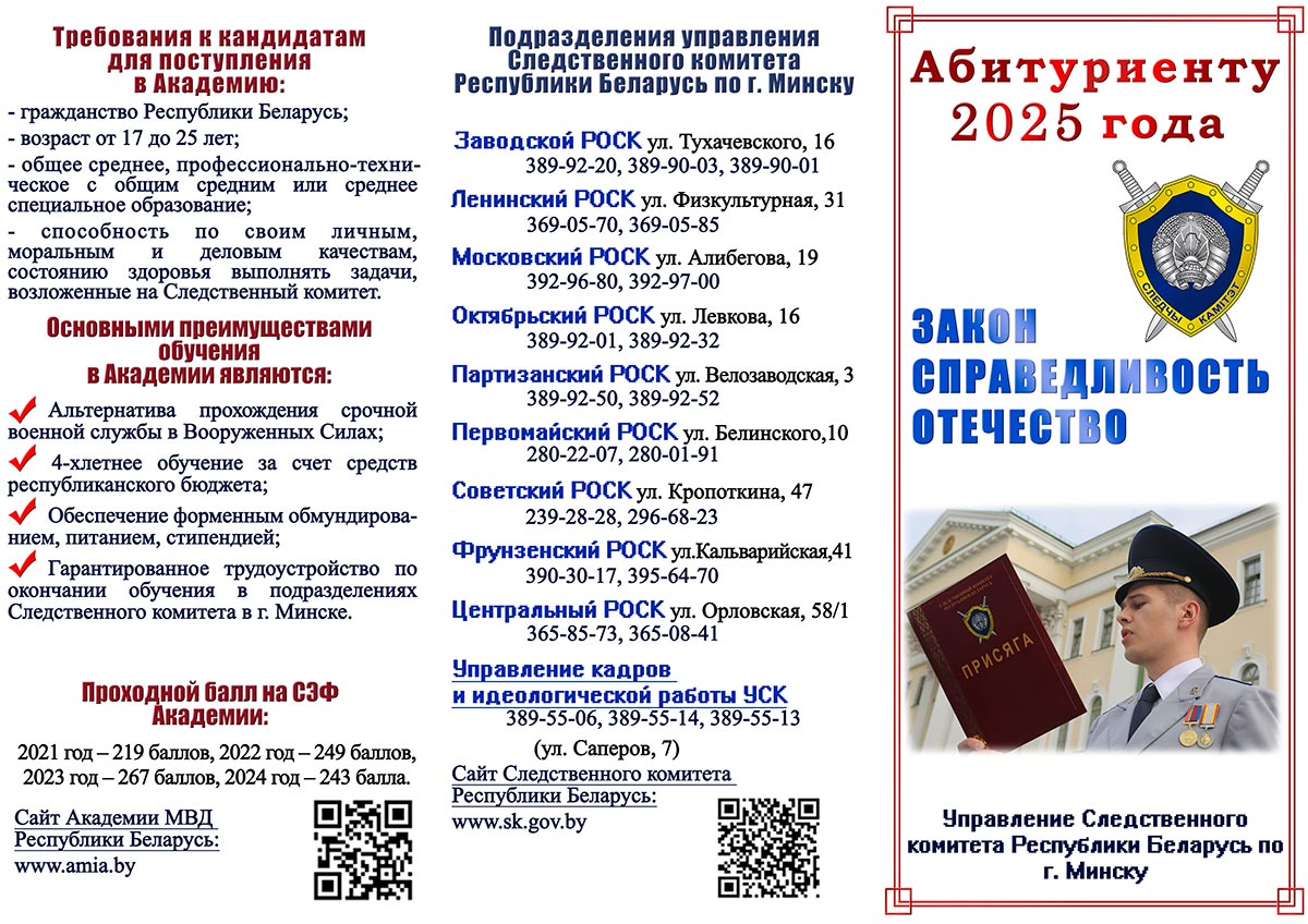 С дополнительной информацией можно ознакомиться на сайтах Академии МВД – academy.mia.by и Следственного комитета Республики Беларусь – www.sk.gov.by.