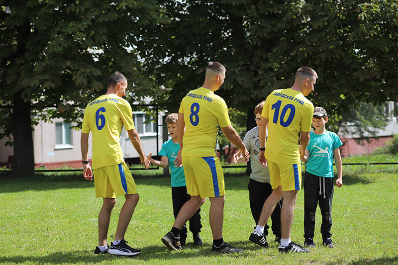 Ребята каждый раз с нетерпением ждут игры в футбол с милиционерами, чтобы на равных участвовать в игре, соревноваться и выяснять, кто более быстрый и ловкий!