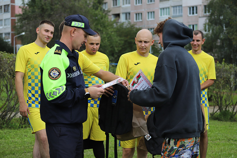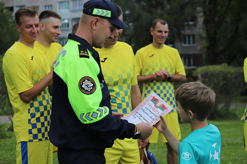 До начала состязания игроки провели разминку и прошли инструктаж по матчу и, заодно, по соблюдению ПДД на дороге. Перед юными спортсменами выступил начальник отдела ГАИ Заводского РУВД г. Минска подполковник милиции Владимир Сергеев и пожелал каждому участнику удачи, напомнил о правилах безопасного участия в дорожном движении, рассказал о нововведениях в ПДД, вступающих в силу с 1 сентября.